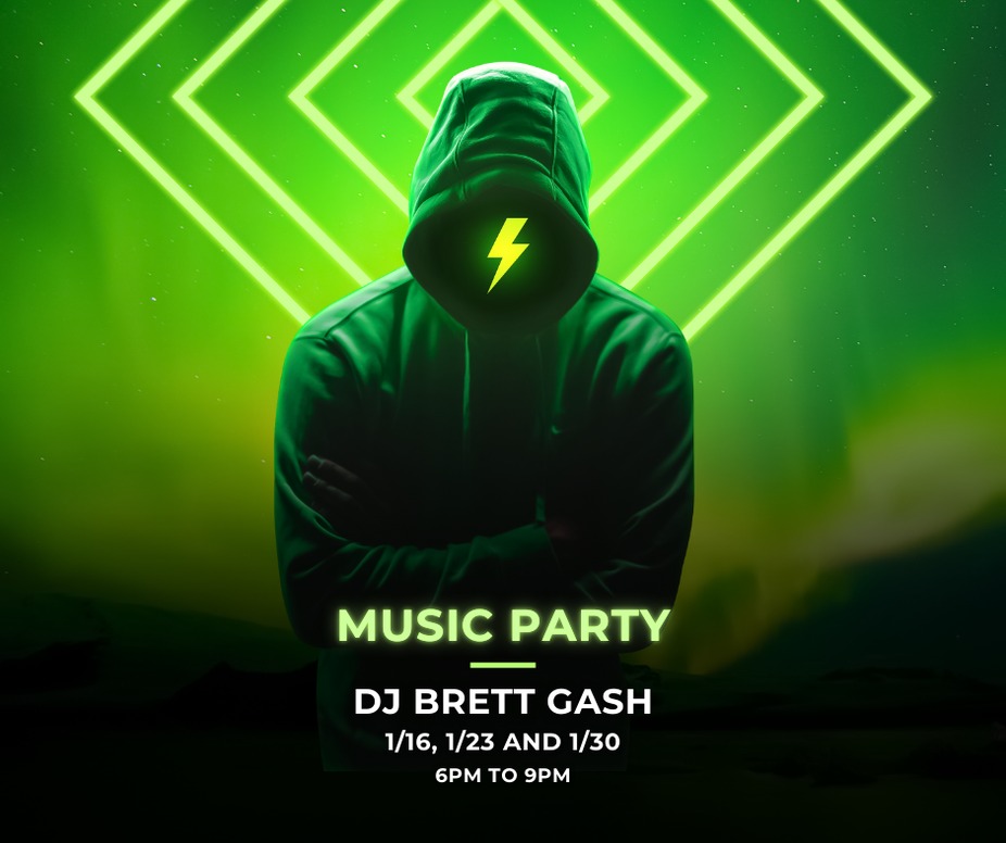 DJ Brett will be here every Friday through the end of January from 6pm to 9pm.